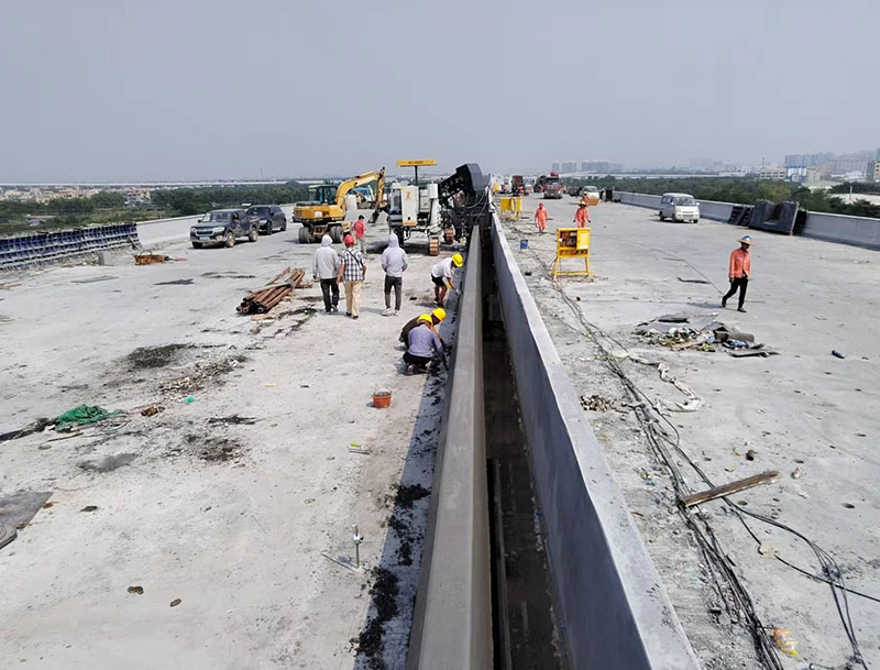 NC1800混凝土滑模攤鋪機在關東中山做的防撞護欄滑模施工